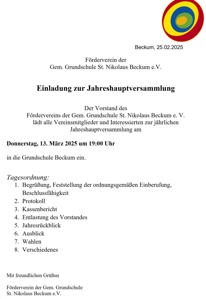 JHV Förderverein Gemeinschaftsgrundschule Beckum