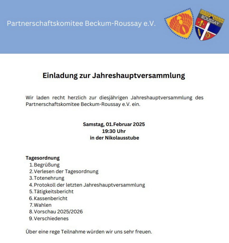 des Partnerschaftskomitees Beckum-Roussay e.V. ein.